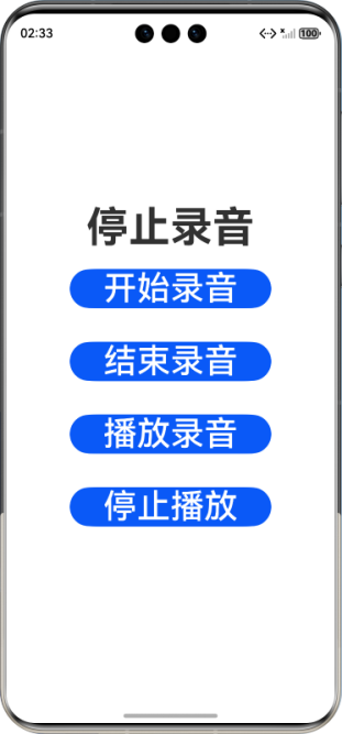 本文将通过一个完整的音频录制与播放示例,介绍如何在HarmonyOS应用中实现音频采集和播放功能。该应用包含开始录音、结束录音、播放录音和停止播放四个核心功能按钮,展示了HarmonyOS音频相关API的使用方法