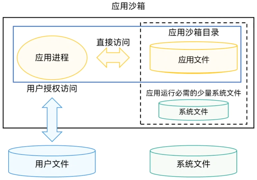 - 在应用沙箱保护机制下,应用无法获知除自身应用文件目录之外的其他应用或用户的数据目录位置及存在。