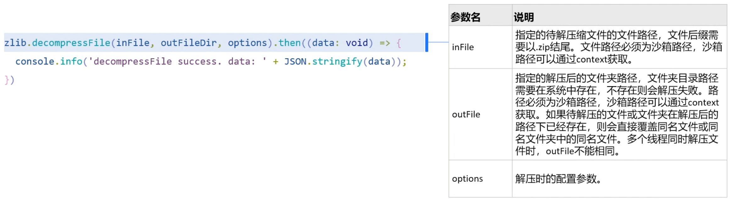 解压文件,解压的结果,使用Promise异步返回,成功时返回null,失败时返回错误码。