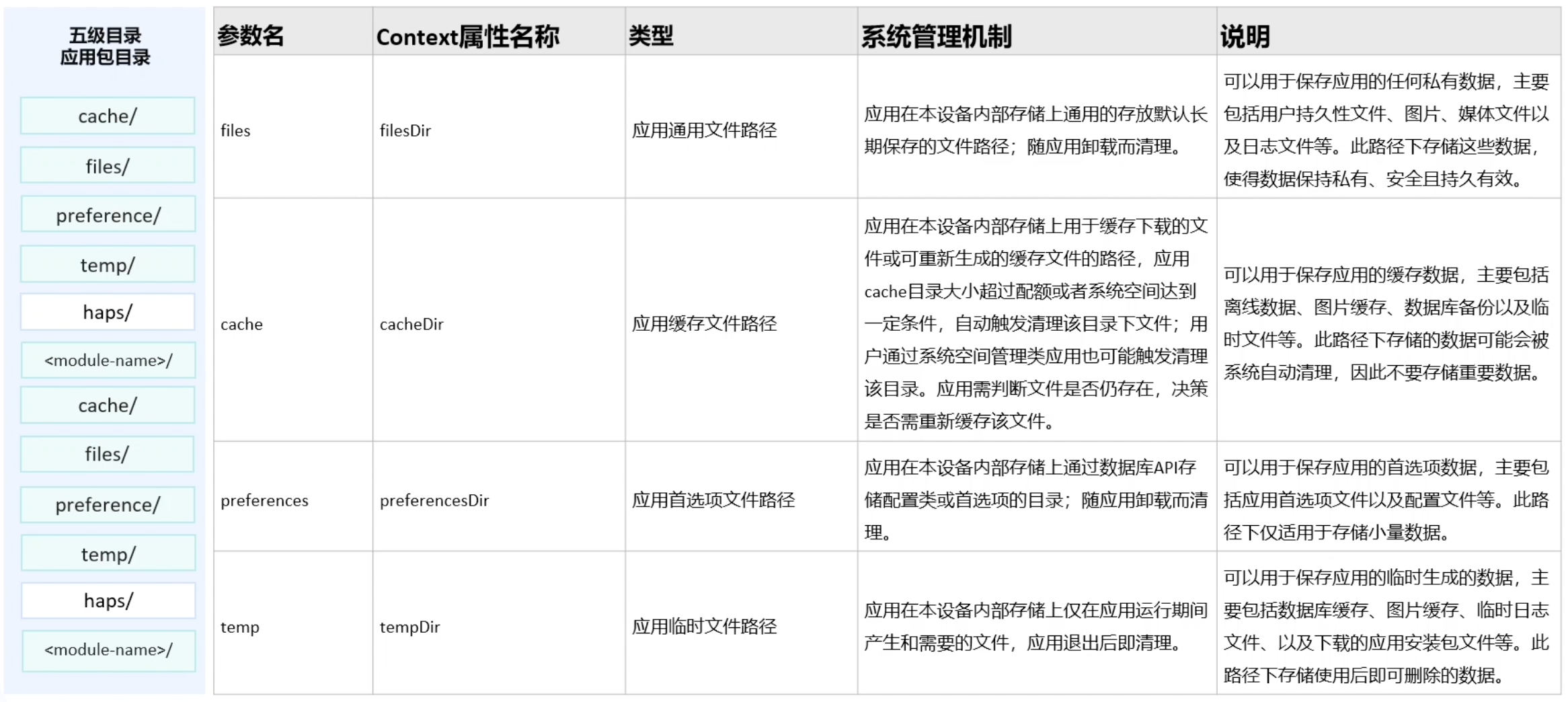 通过UIAbilityContext、AbilityStageContext、ExtensionContext可以获取HAP级别应用文件路径。HAP信息可以存放在这些目录下,存放在此目录的文件会跟随HAP的卸载而删除,不会影响App级别目录下的文件。