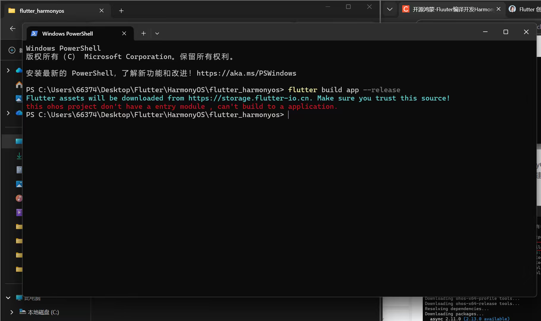 执行 flutter build app --release 报错: this ohos project don't have a entry module , can't build to a application.