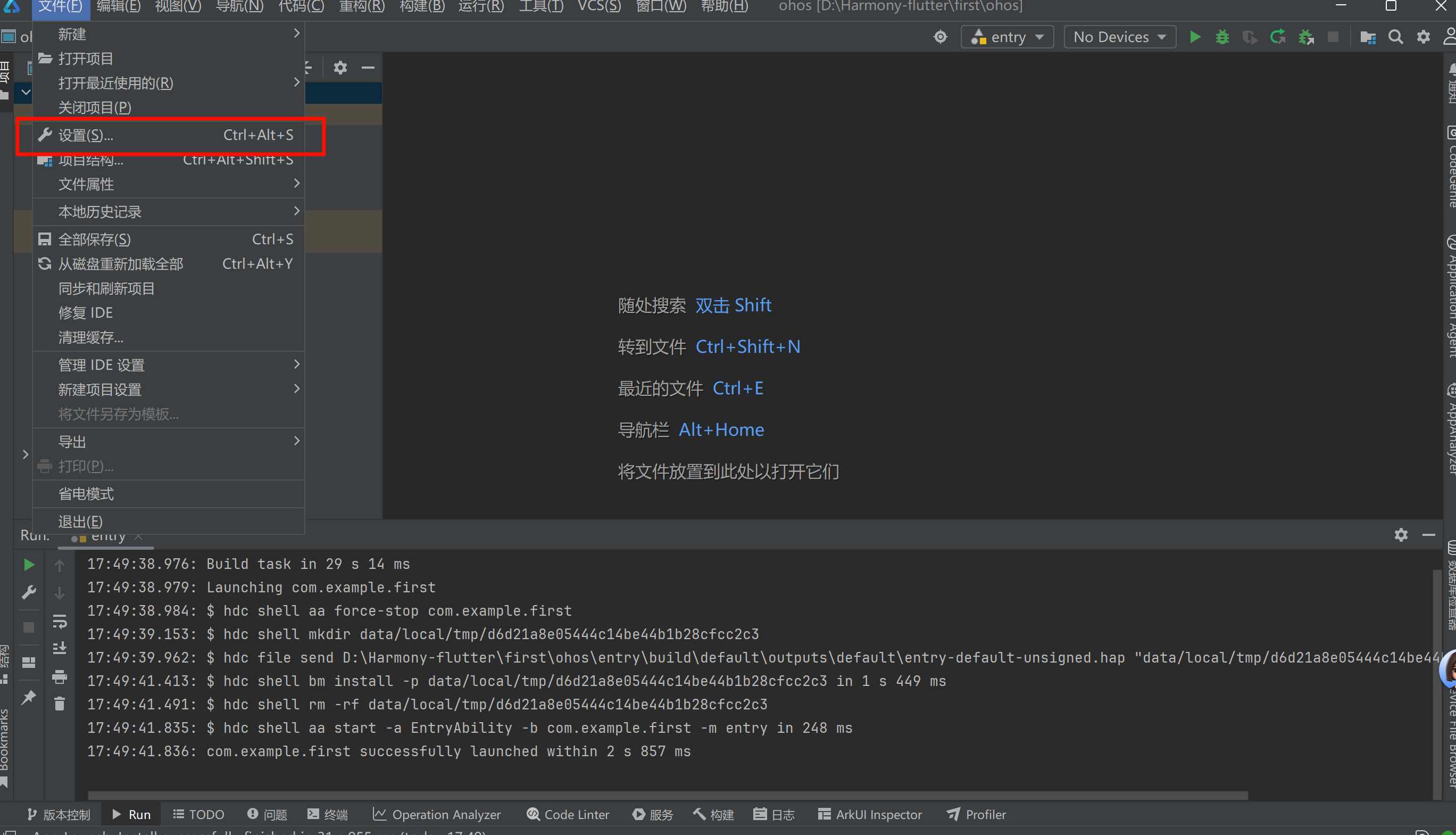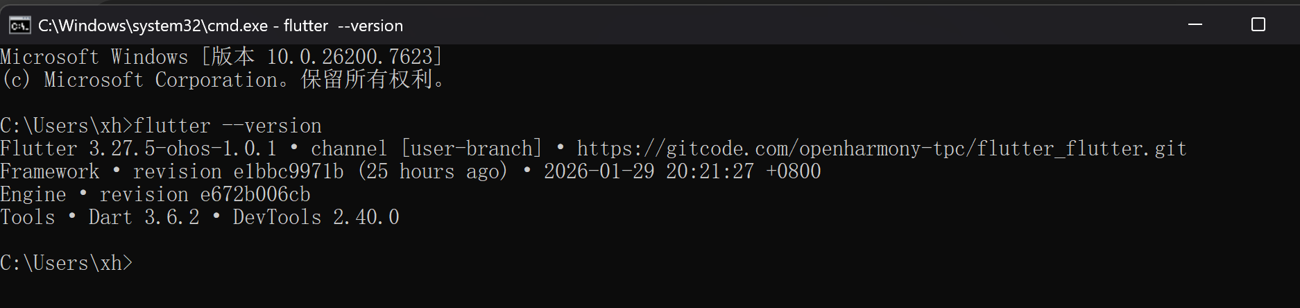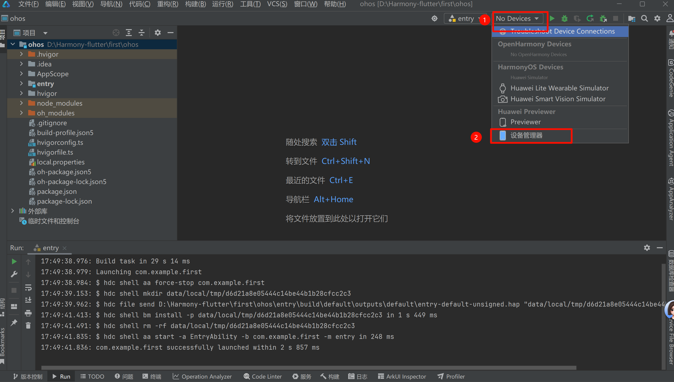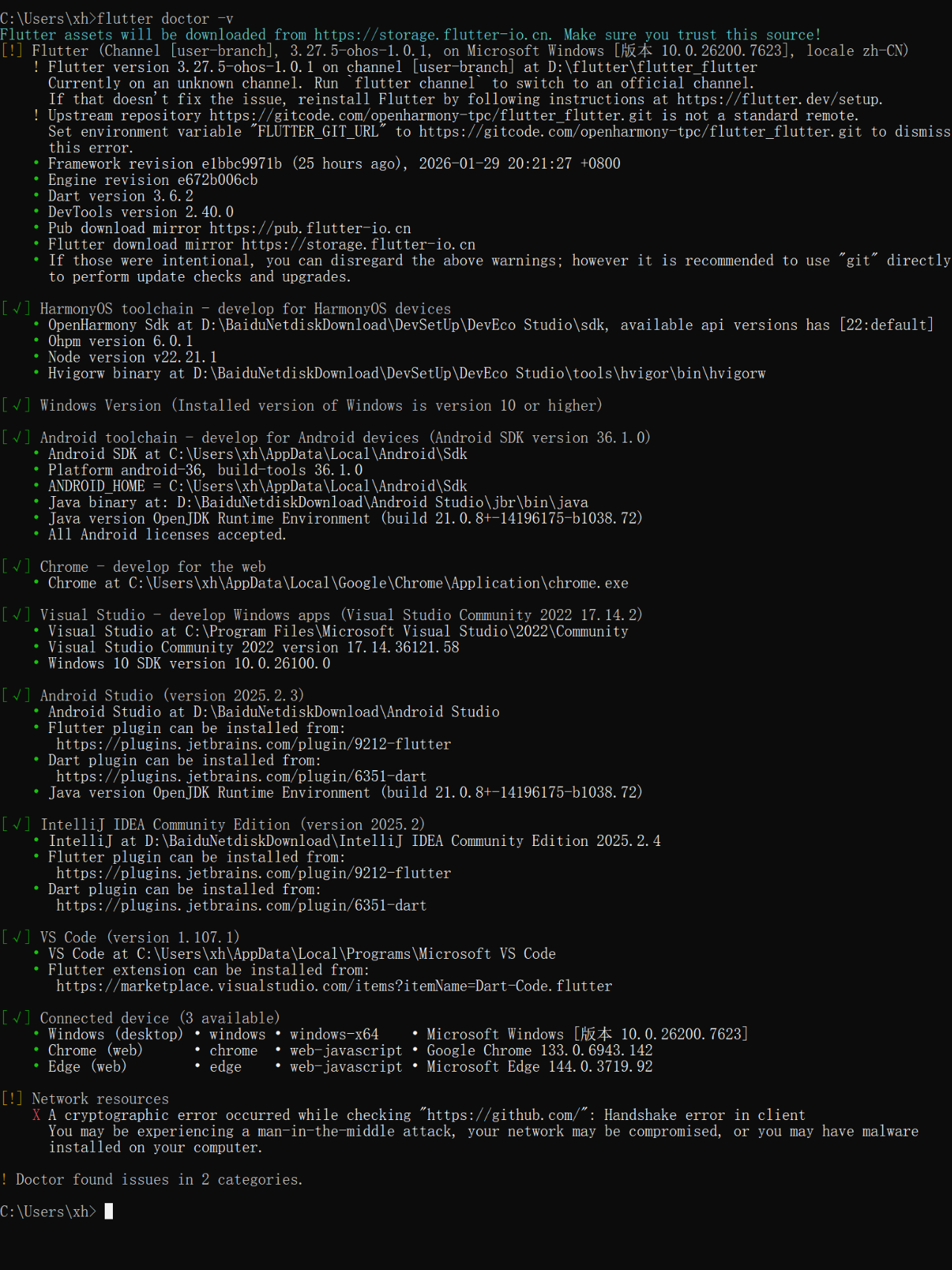 检查鸿蒙环境是否配置成功,如果有地方有问题,可以参考一下这位老师的文章:Windows 11 OpenHarmony 版 Flutter 开发环境搭建常见问题解决方法
