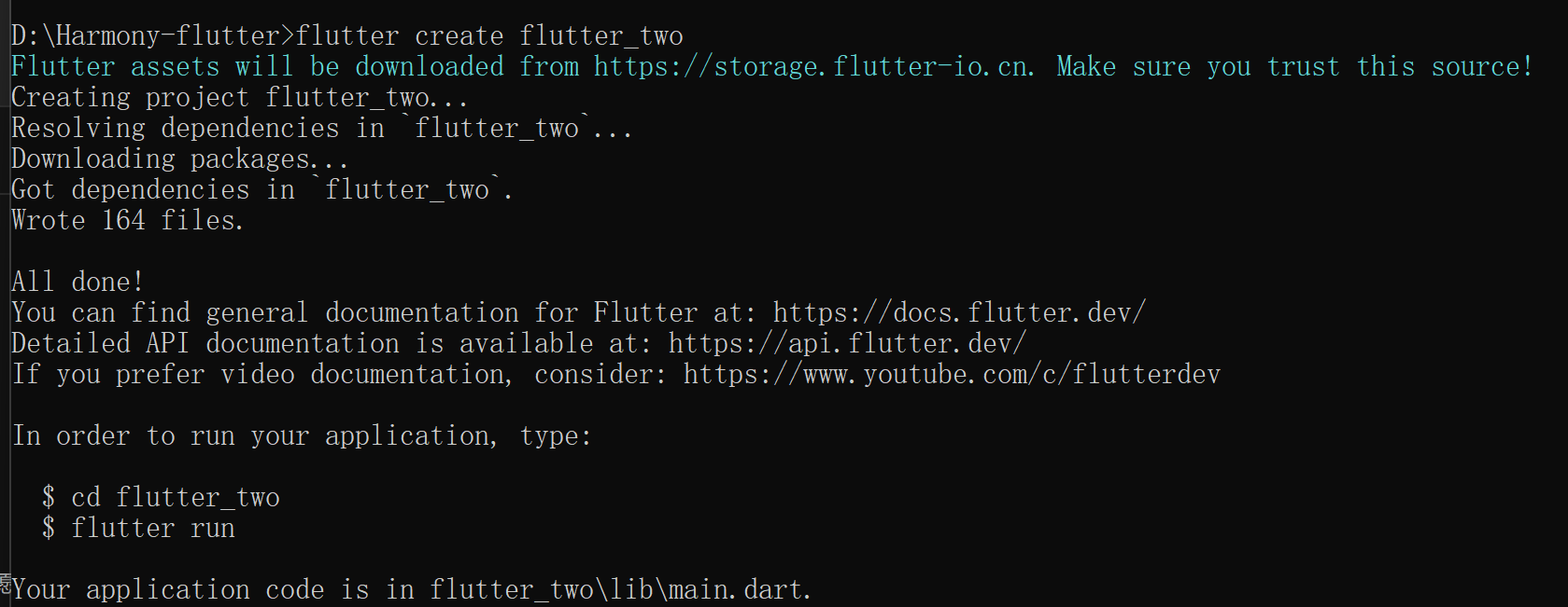 创建纯鸿蒙项目:我们可以专门创建一个文件夹保存Flutter鸿蒙项目,在文件路径中输入cmd重新打开一个新终端,根据你的需求,有两种方式创建项目: