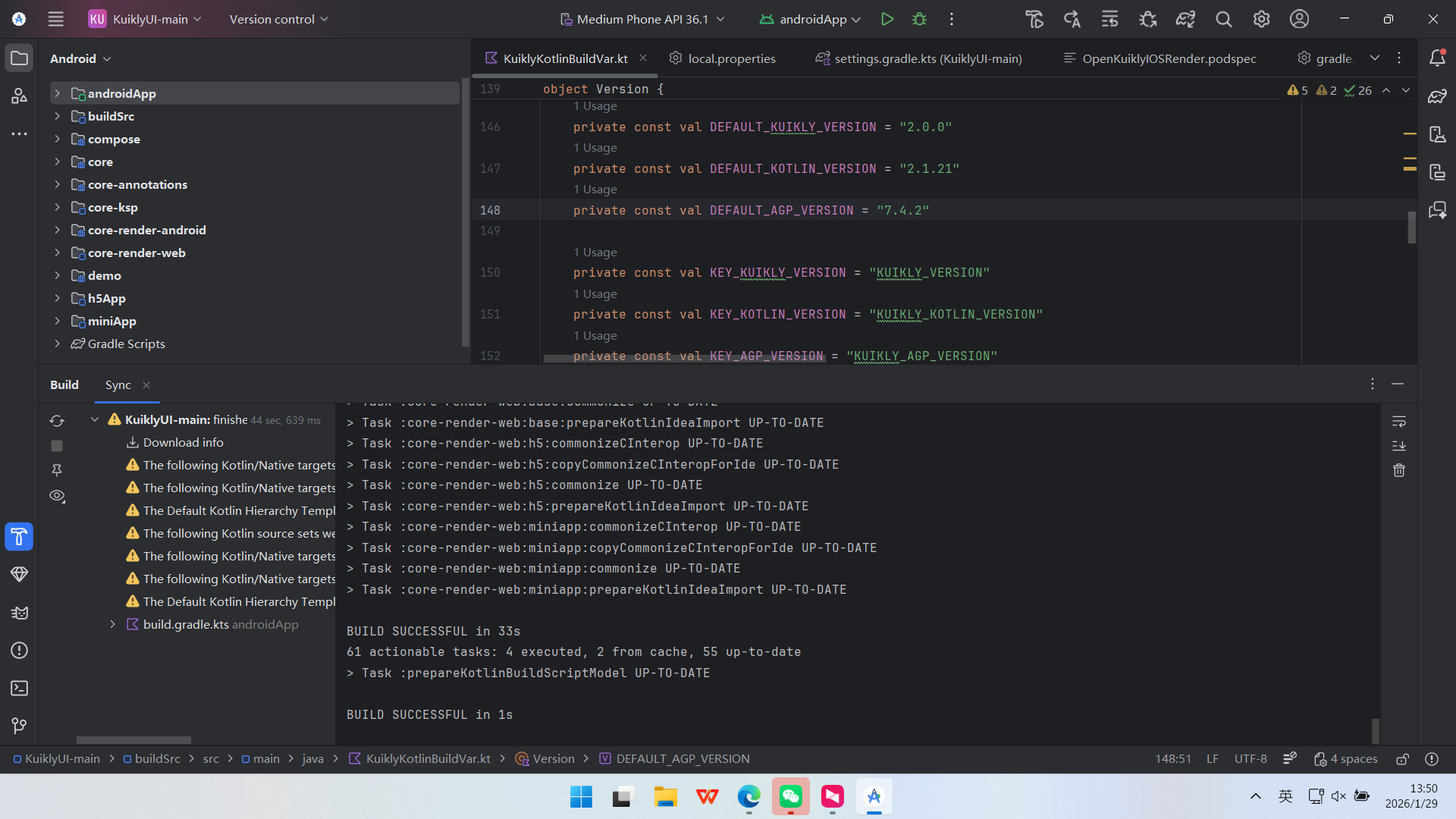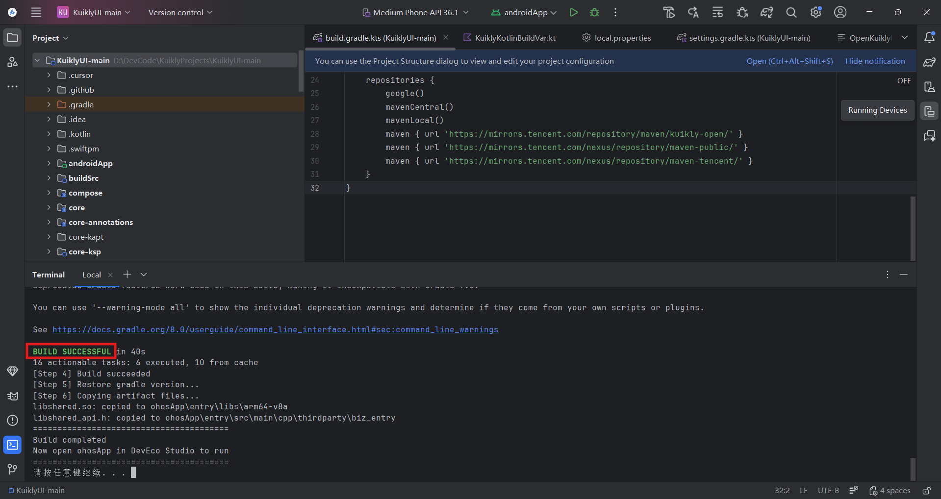 https://gitcode.com/Tencent-TDS/KuiklyUI?source_module=search_result_repo&isLogin=12、在Android studio里导入AotmGit平台的项目,等待构建成功