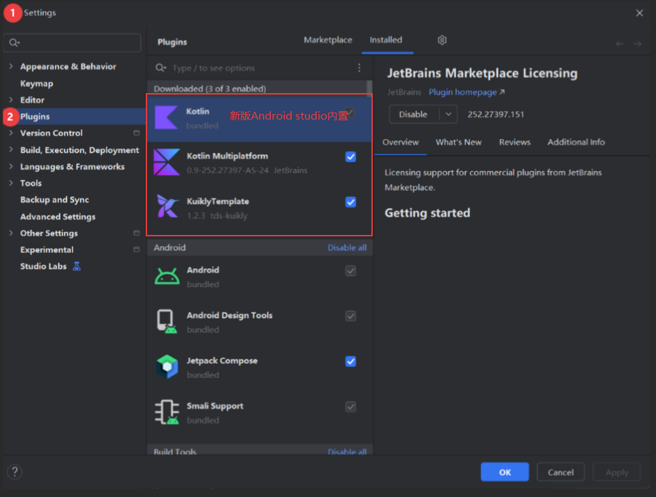 在Plugins里搜索kotlin和kuikly,安装以下插件