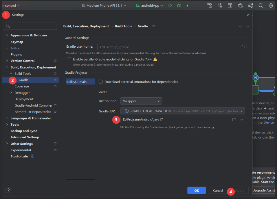 KuiklyUI:基于KMP技术的高性能、全平台开发框架,具备统一代码库、极致易用性和动态灵活性。前言:此文主要讲述用Windows系统安装Kotlin、Kuikly插件和OpenHarmony开发环境及创建出手机虚拟设备。1、安装Android studio,在浏览器安装最新版Android studio。1、安装DevEco Studio,在浏览器安装最新版DevEco Studio。2、在A