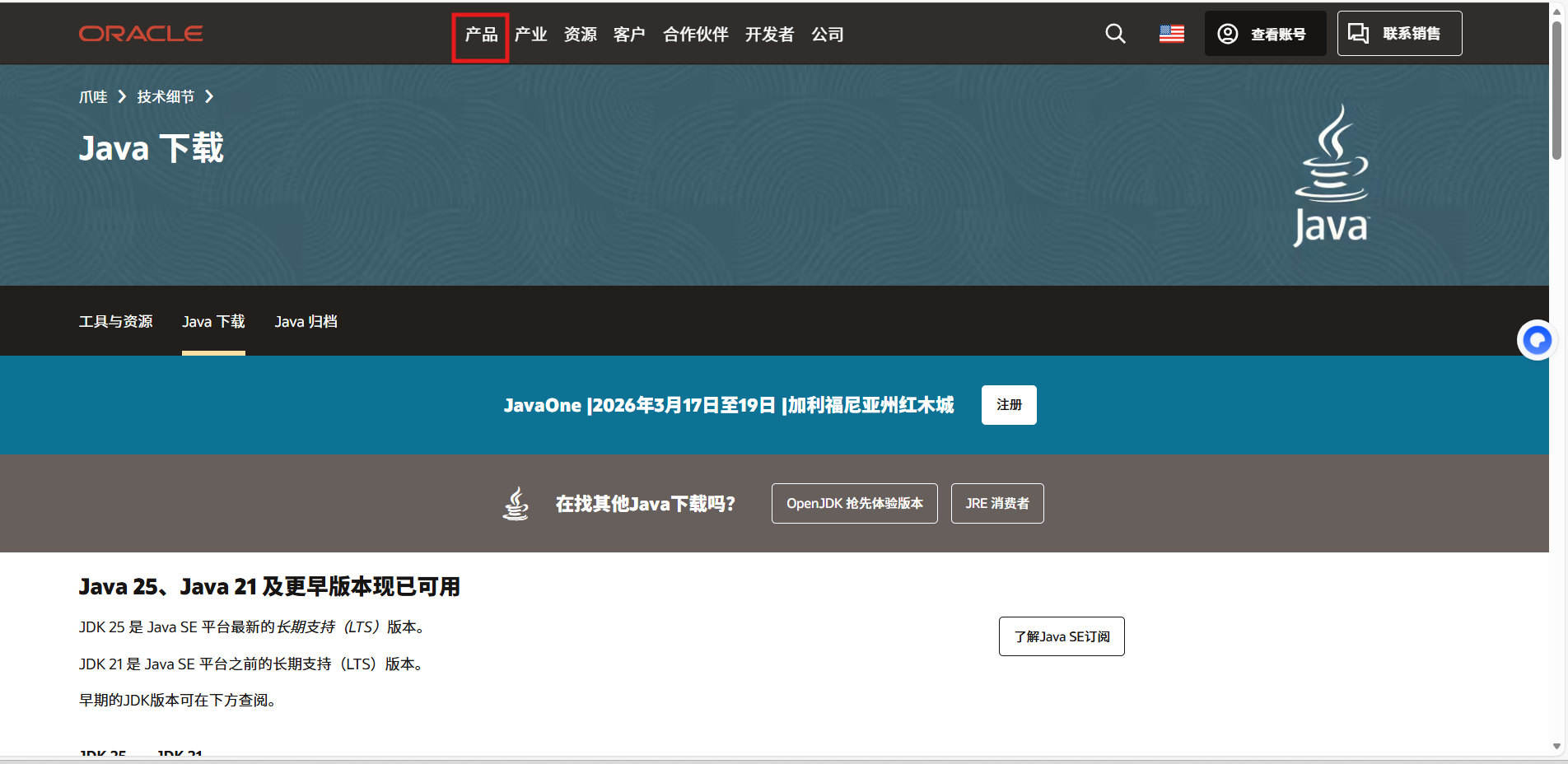(1)访问Oracle JDK下载页面