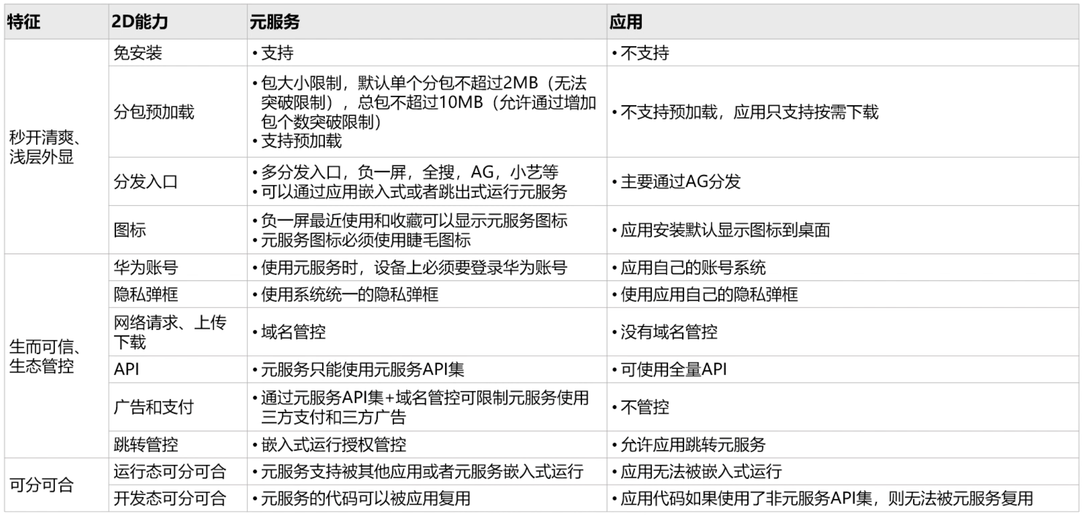 元服务与传统应用的对比请见下表。