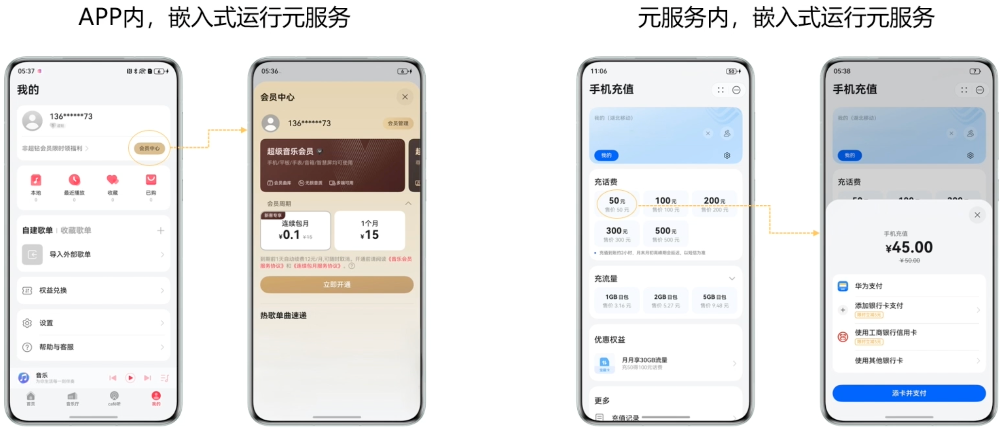 - 两者可独立部署,可以互相嵌入运行,元服务和APP之间流动有序、优势互补。
