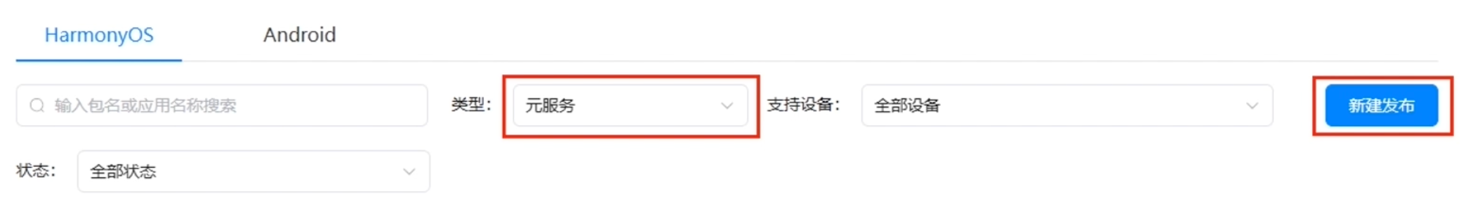 - HarmonyOS元服务只能采用“元服务API集”进行开发,且只支持Stage模型、只支持ArkTS接口;开发者在DevEco Studio中选择开发元服务时,工具将自动筛选“元服务API集”。