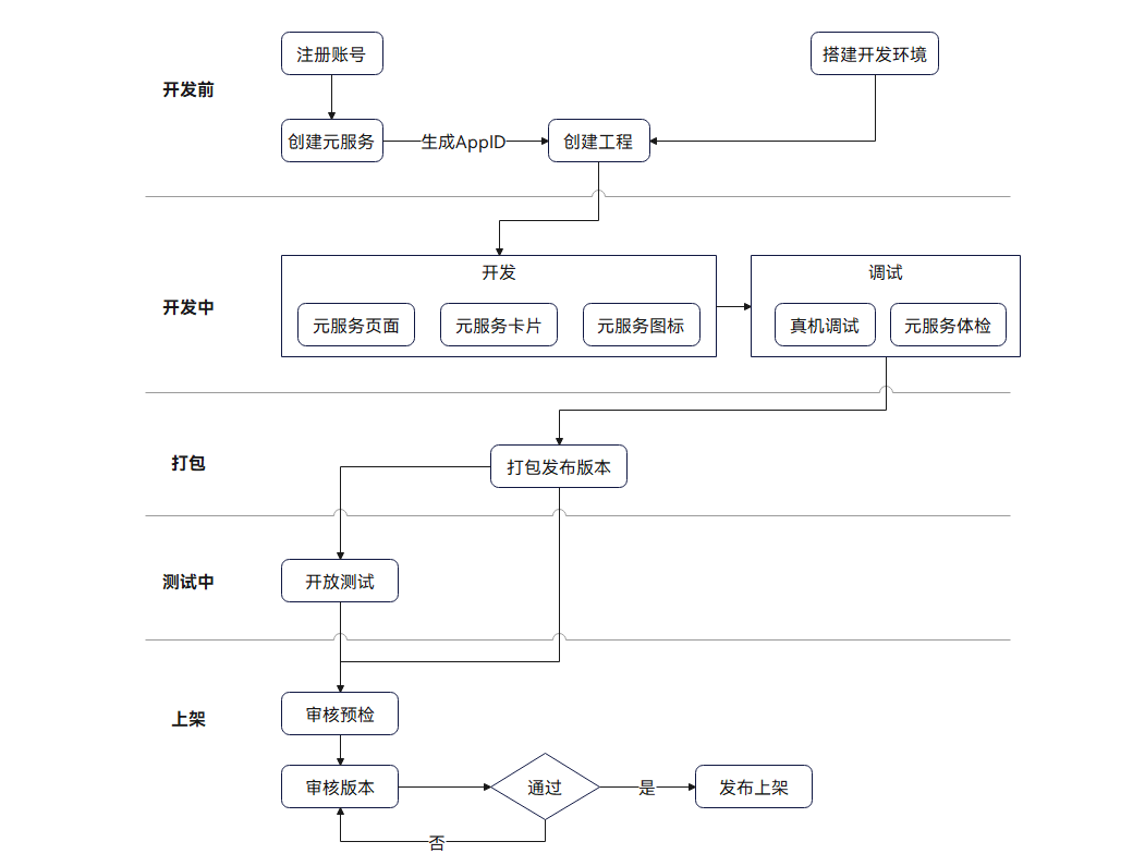 元服务的开发流程如下图所示。