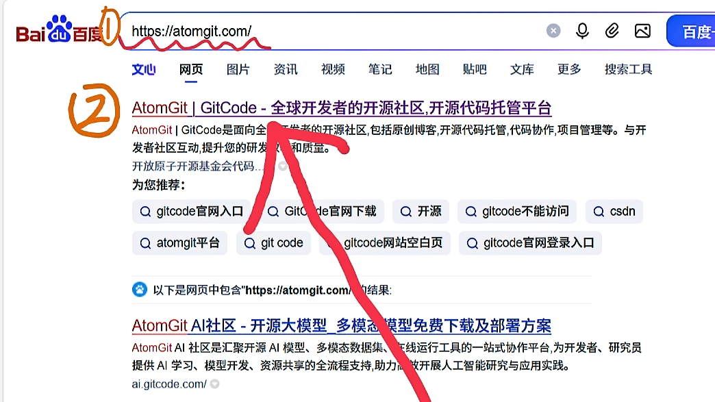 - 地址栏输入https://atomgit.com/ → 按回车进入官网;