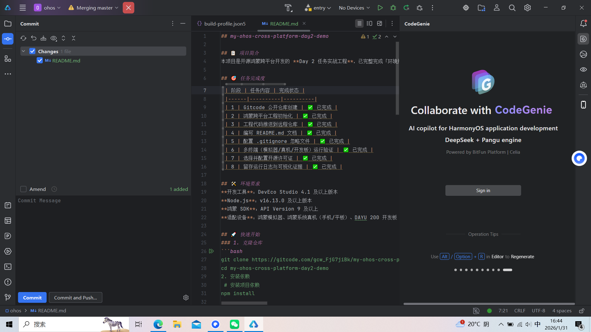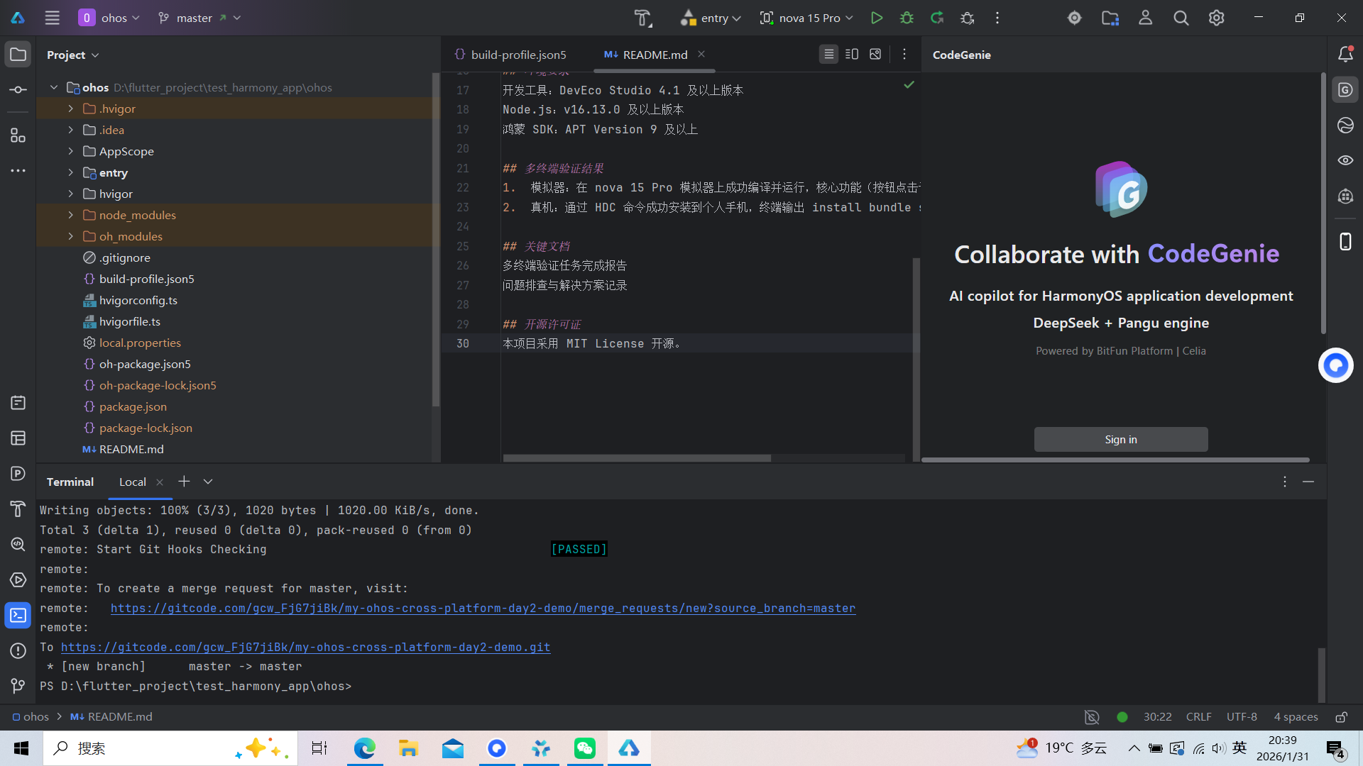 《开源鸿蒙跨平台开发 Day2 实战:多终端验证 + GitCode 托管全流程(附避坑指南)》
