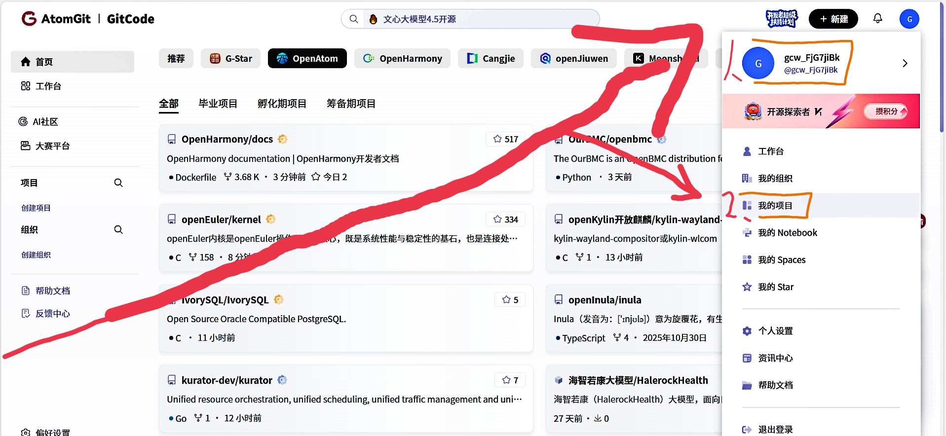 ✅ 准备项 2:AtomGit 账号 + 项目已准备好?