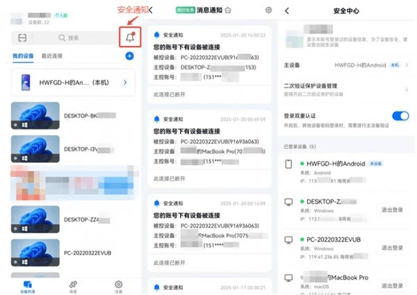 你可以把常用的手机设为验证设备,每次开启远控连接前,都需要主设备验证通过才能发起连接。确保每一次连接都在你的掌控之中,避免陌生设备非法接入。