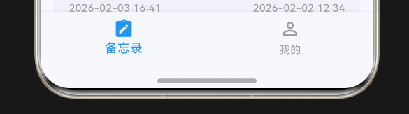 我们通过引入 BottomNavigationBar 组件,实现了“备忘录”和“我的”两个功能模块的切换。