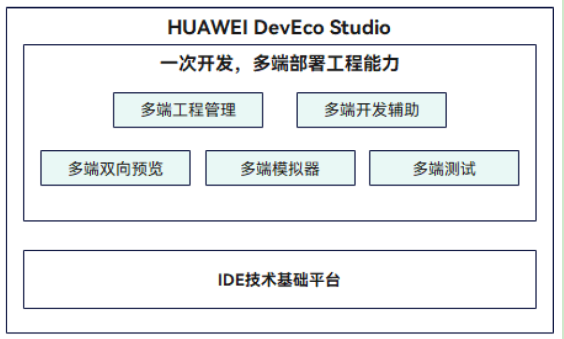 HUAWEI DevEco Studio是面向全场景多设备的一站式开发平台,支持多端双向预览、分布式调优、分布式调试、多设备模拟、低代码可视化开发等能力,帮助开发者降低成本、提升效率、提高质量。