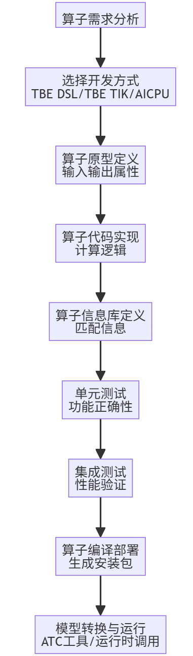 - 算子代码实现:根据选择的开发方式(TBE/TIK/AICPU)实现计算逻辑