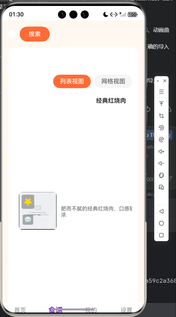 - 列表入场动效:食谱列表项采用逐行淡入 + 向上滑入的错开序列动画,避免一次性全量渲染造成 JS 线程阻塞;