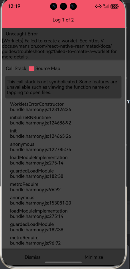 这个错误通常出现在鸿蒙等跨平台适配场景中,核心原因是 Worklet(Reanimated 的核心特性)未正确配置或与鸿蒙平台不兼容。