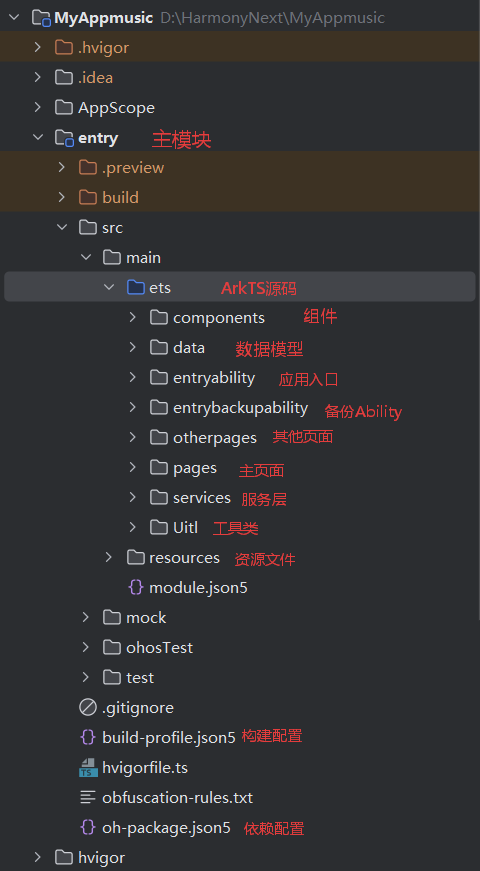 本文介绍了基于HarmonyOS Next开发的音乐播放器项目MyAppmusic的技术实现。项目采用三层架构设计,包含应用入口管理(EntryAbility)、核心播放器(AVPlayerManager)、数据模型和页面组件等模块。重点讲解了播放器生命周期管理、事件驱动机制、状态同步(通过EventEmitter)和数据持久化(Preferences API)等关键技术实现。项目展示了主页面、播