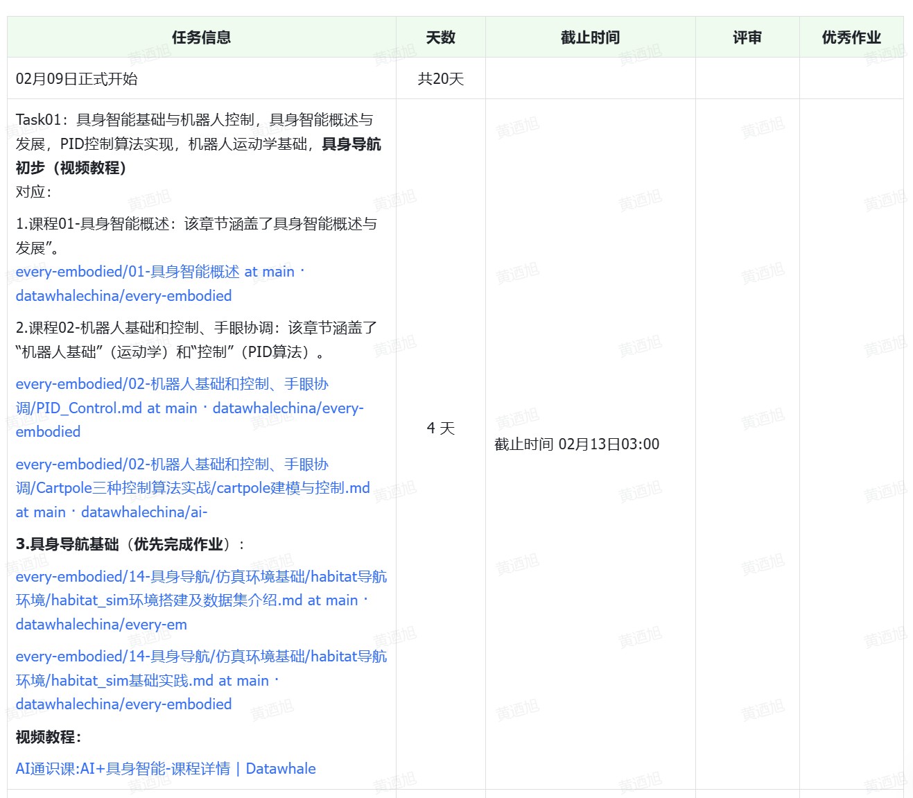 本次组队学习的内容是【系统学习AI硬件与机器人技术,涵盖具身智能、机器人控制、计算机视觉、强化学习和仿真等核心技术,理论与实践相结合。】