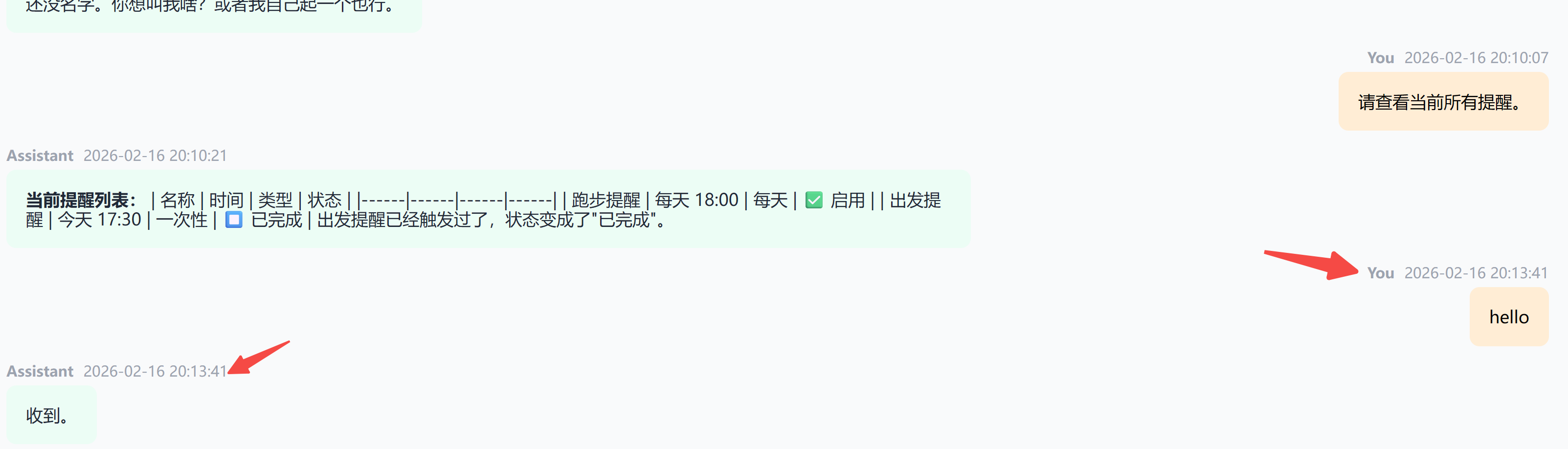 2026-02-15 17:38:50 - openclaw - INFO - 💬 Chat事件: runId=1771148324960--1126353816726381137, state=delta, message={'role': 'assistant', 'content': [{'type': 'text', 'text': '收到'}], 'timestamp': 1771148330101}