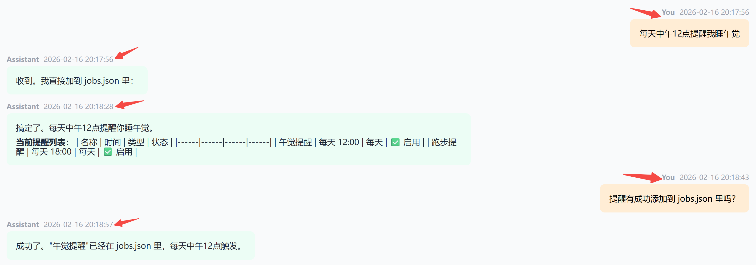 2026-02-15 17:38:50 - openclaw - INFO - 💬 Chat事件: runId=1771148324960--1126353816726381137, state=delta, message={'role': 'assistant', 'content': [{'type': 'text', 'text': '收到,我去检查下人设文件'}], 'timestamp': 1771148330294}