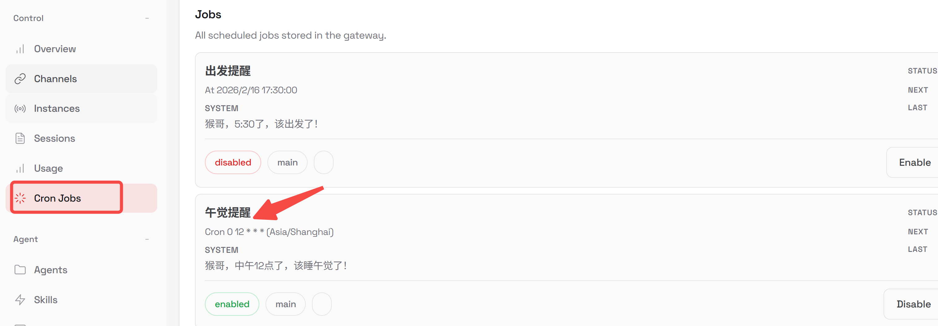 回到 openclaw 控制台验收下: