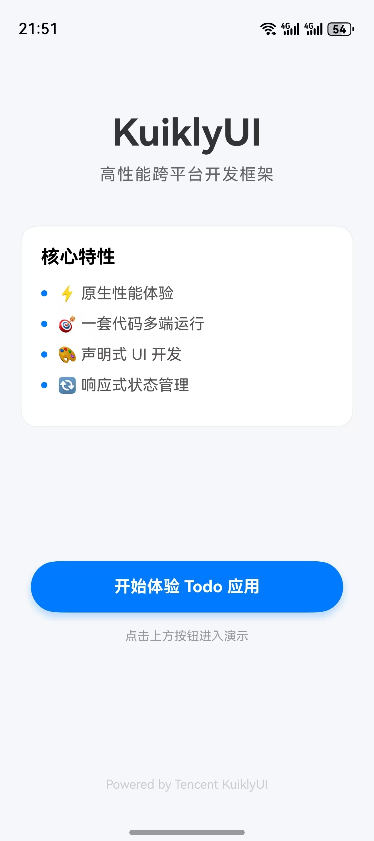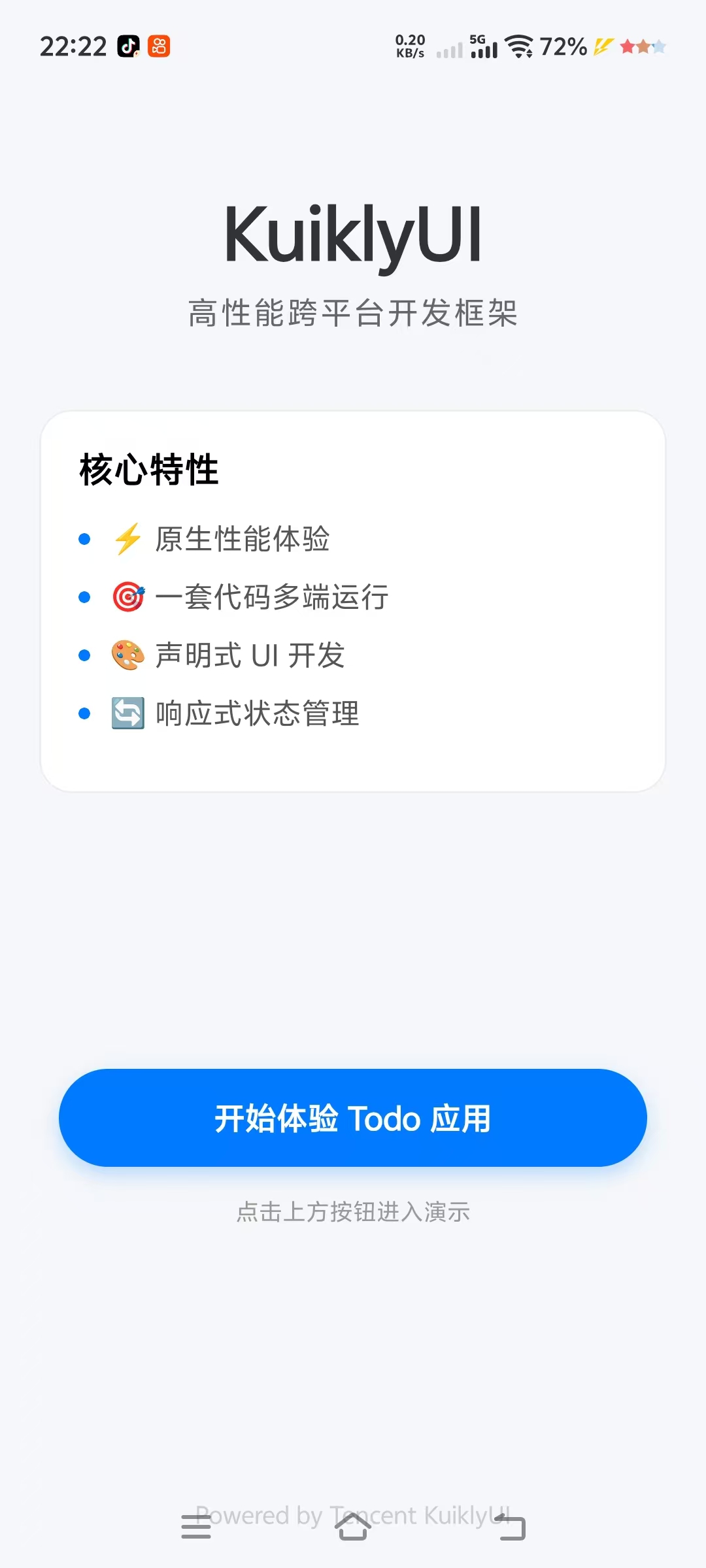 KuiklyUI是一款专门面向Android + 开源鸿蒙的轻量级高性能跨平台UI框架,它的核心优势是: