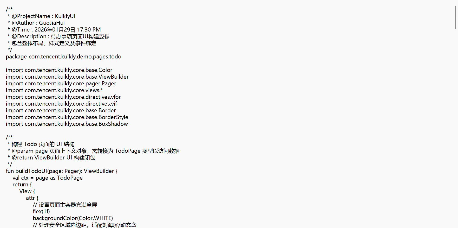 依然在com.kuikly.todo文件夹下,找到TodoPageUI.kt。