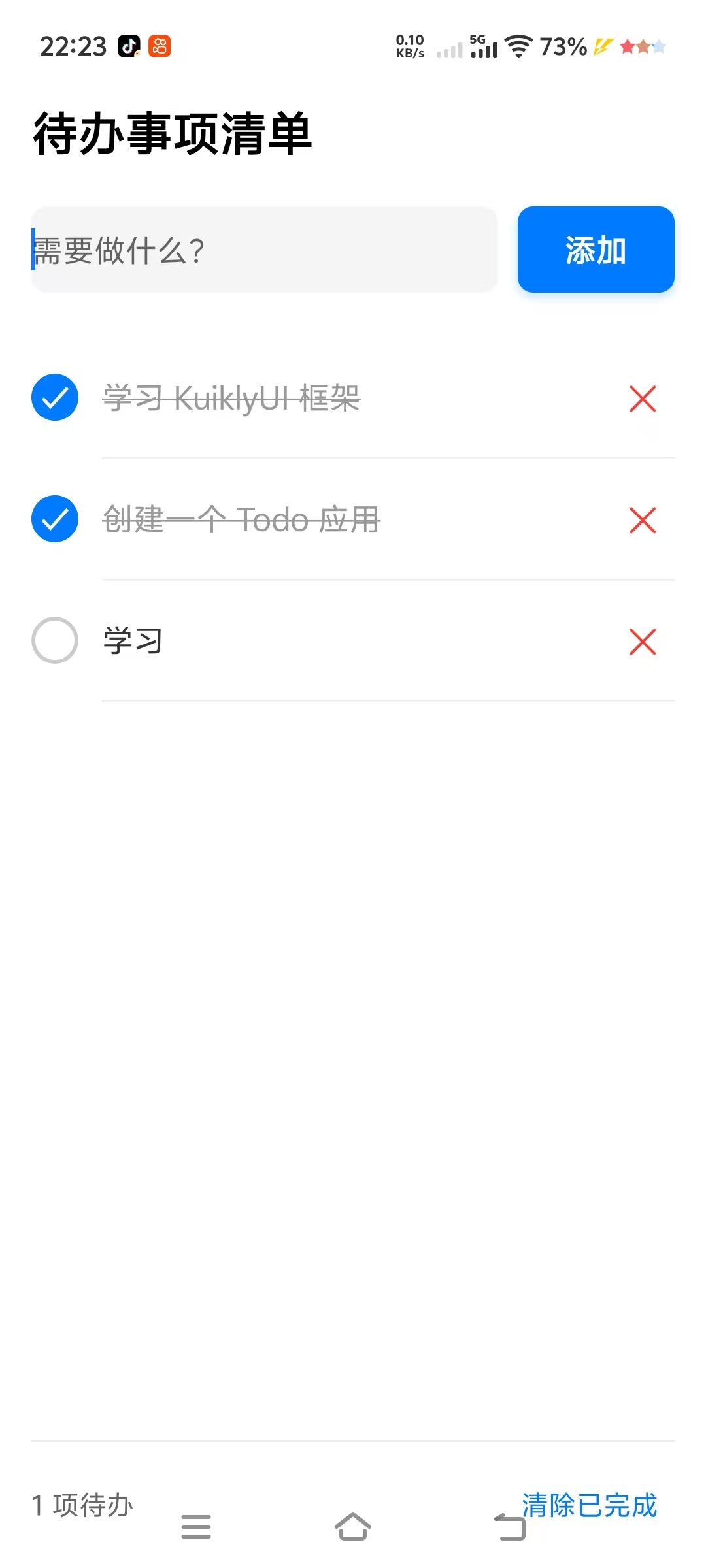 - 清空按钮:一键清理已完成待办
