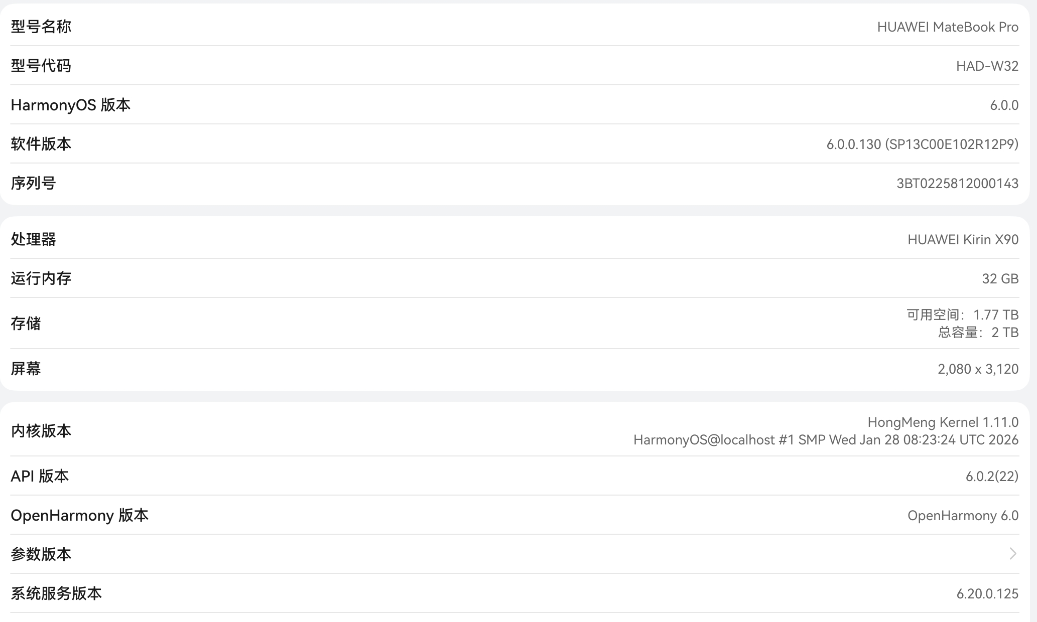 | 系统版本 | HarmonyOS 6.0.0 (6.0.0.130) |