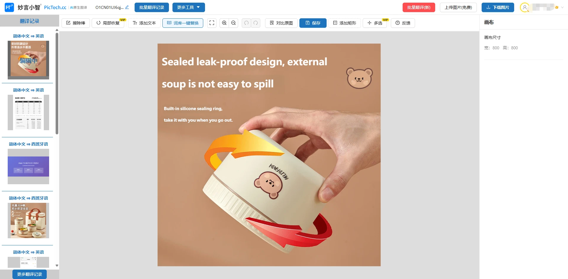 随着 AI 技术的发展,图片翻译已经变得越来越简单。过去需要:OCR识别手动翻译PS重新排版现在很多AI图片翻译工具已经可以一键完成整个流程。如果你平时需要处理:电商商品图片产品介绍图海外推广素材可以尝试使用一些在线图片翻译工具来提高效率。比如我最近在用的妙言小智(PicTech.cc),对于中文图片翻译成英文来说还是挺方便的。中文图片翻译成英文。