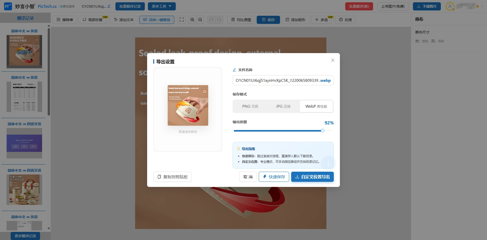 比如我最近在用的 妙言小智(PicTech.cc),对于中文图片翻译成英文来说还是挺方便的。