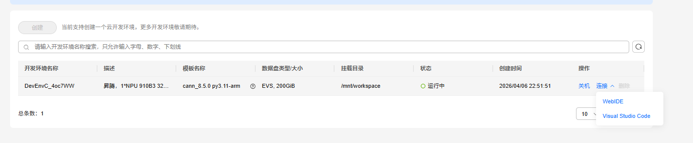 环境创建完成并开机后,选择 WebIDE 方式进入在线开发界面。