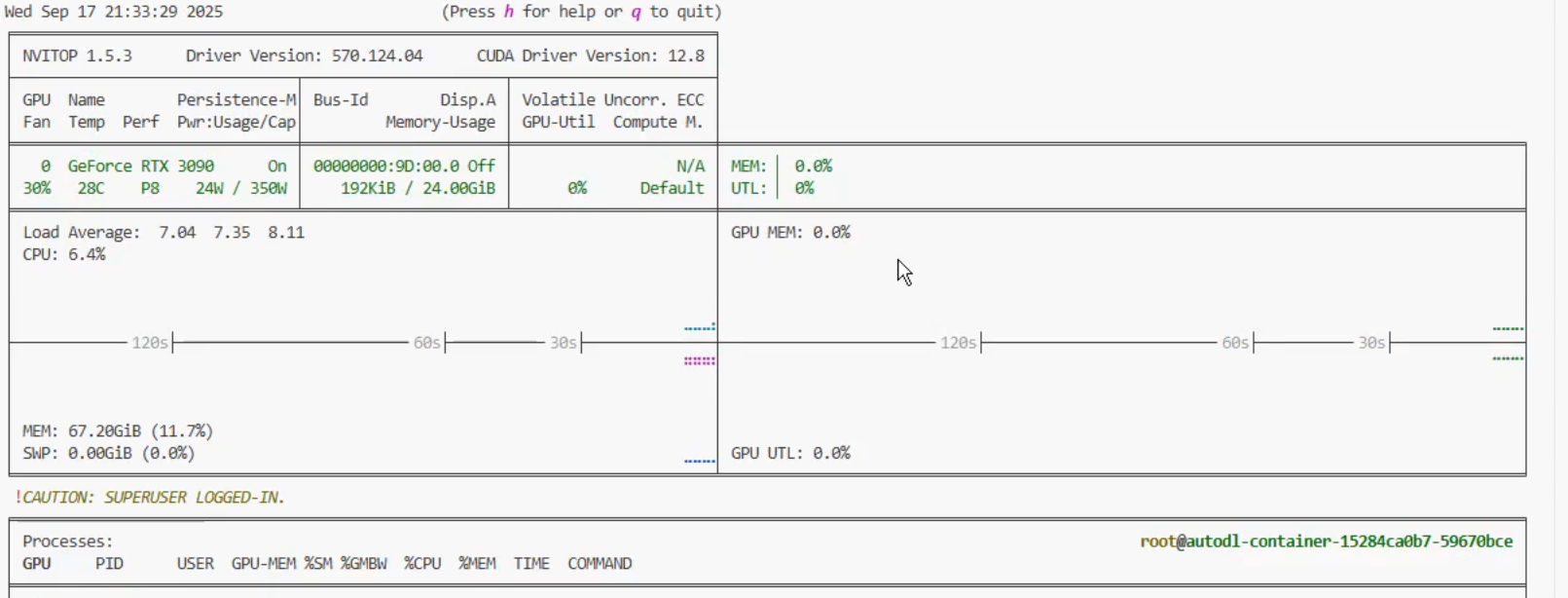输入nvitop可实时动态的显示CPU,GPU的设备信息